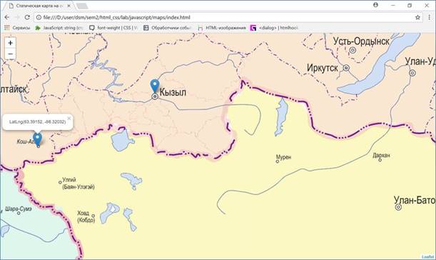 HTML-документ, в которой с помощью Leaflet-библиотеки